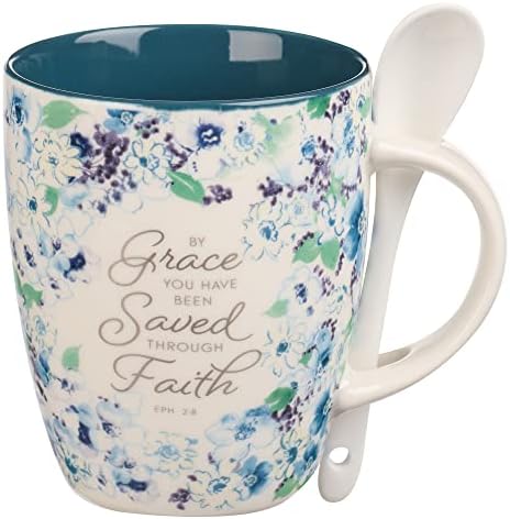 Amazon Com Christian Art Gifts Coffee And Tea Mug With Ceramic Spoon Set For Women By Grace You Have Been Saved Ephesians 2 8 Encouraging Bible Verse For Hot Cold Beverages Navy
